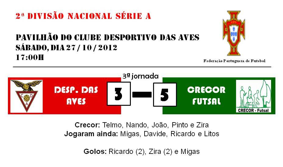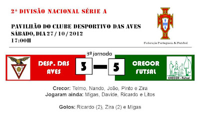 Partida com um início muito forte por parte dos atletas da CRECOR, com uma boa circulação de bola, fazendo esticar o jogo até à baliza do adversário. Desde muito cedo viu-se a CRECOR criar situações flagrantes de golo sem descurar a sua retaguarda. Jogo completamente controlado pelos Homens de Narciso Tavares que viu uma vitória natural contra uma equipa muito bem organizada, possante fisicamente e que tentou impedir através de vários sistemas de jogo as investidas sistemáticas dos elementos da CRECOR. Nota para as inúmeras oportunidades criadas pela equipa da casa, que foram desperdiçadas nomeadamente num livre 10m convertido por Luís Sá, permitindo a defesa do guarda redes adversário. No cômputo geral, os atletas da CRECOR foram justos vencedores sendo difícil eleger o melhor em campo, pois todos estiveram excecionais. Por fim, devemos referir uma palavra de apreço ao fair-play das duas equipas e nota muito positiva para a equipa de arbitragem que compôs assim um grande espectáculo de futsal!